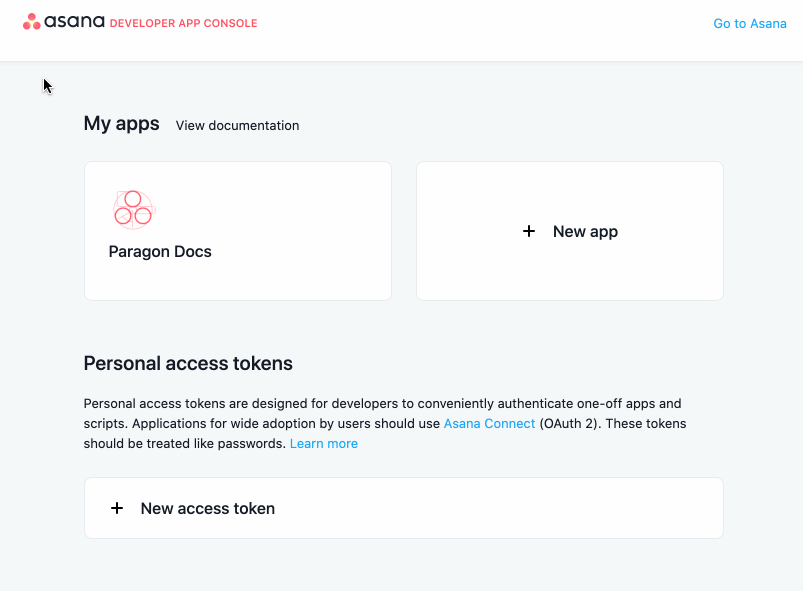 Note: You’ll need to create a new Asana app if you don’t already have one
