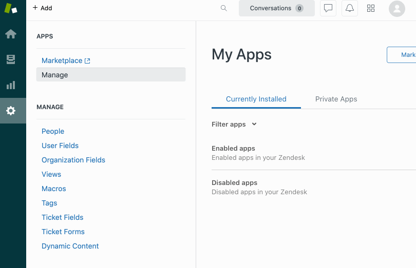 1. In your Zendesk dashboard, click the gear icon on the left.